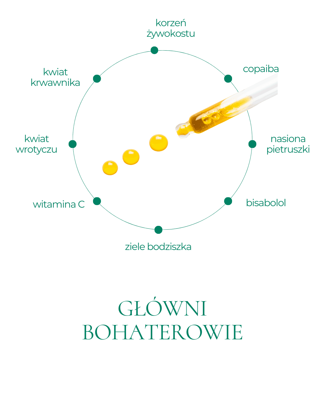 Leciutkie serum olejowe dla tych, którzy borykają się z „kaszką” na czole, wyskakującymi niespodziankami, zaskórnikami. Leciutkie, ale nad wyraz bogate: 8 cudownych ekstraktów z ziół i kwiatów (babka, wrotycz, krwawnik, boodziszek, żywokost,, dziki bez, nagietek), 3 mocarne olejki eteryczne, stabilna witamina C, 5 surowych olejów i biozgodny skwalan.